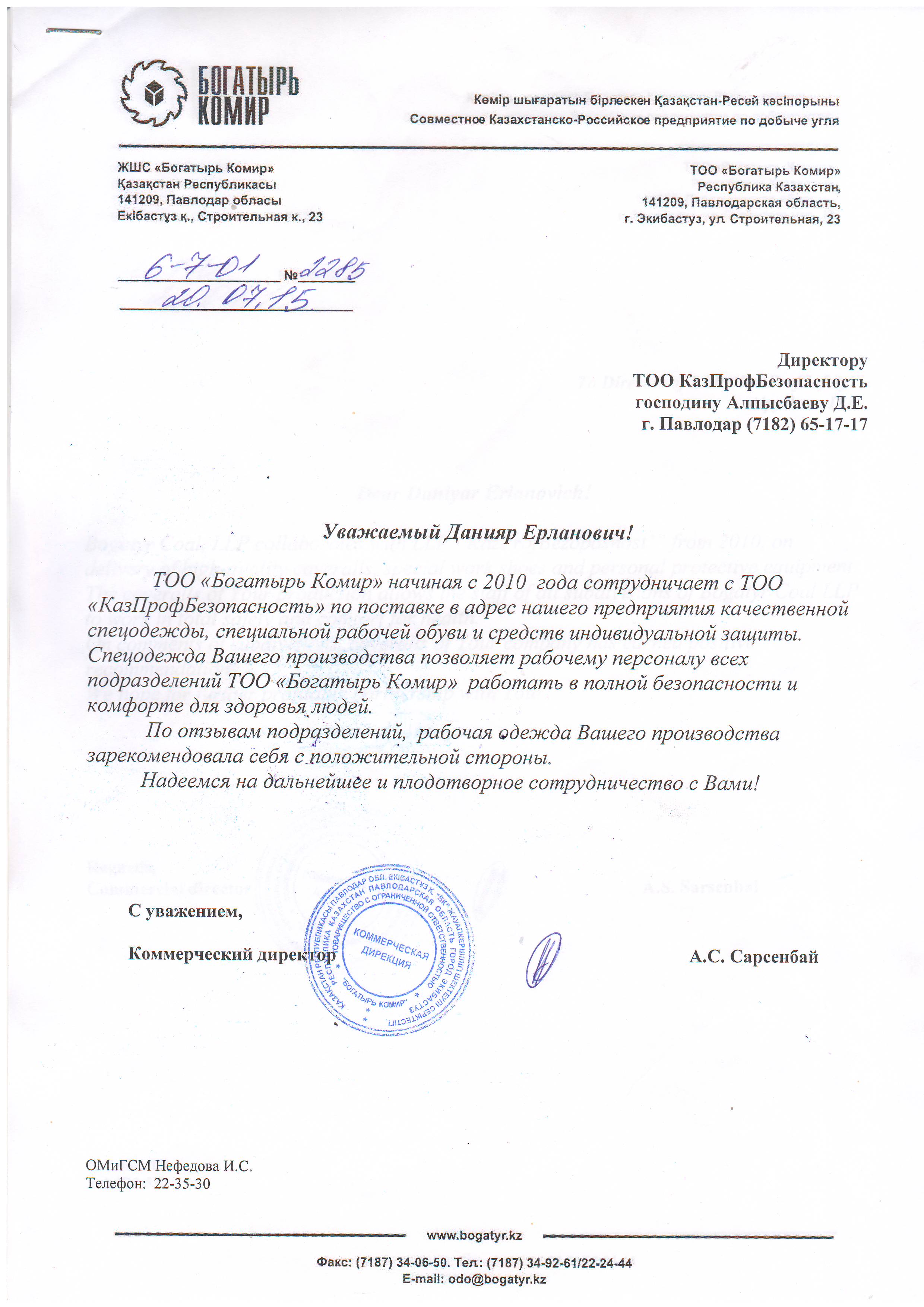 На сегодняшний день структура компании «KAZPROF SAFETY» – это совокупность собственных специальных подразделений в городе Павлодар: мощный производственный блок, торгово-коммерческий отдел и развитый транспортно-складской комплекс. Слаженная и бесперебойная работа всех трех составляющих делает нашу компанию региональным лидером на рынке специальной одежды и обуви, а также средств индивидуальной защиты.
