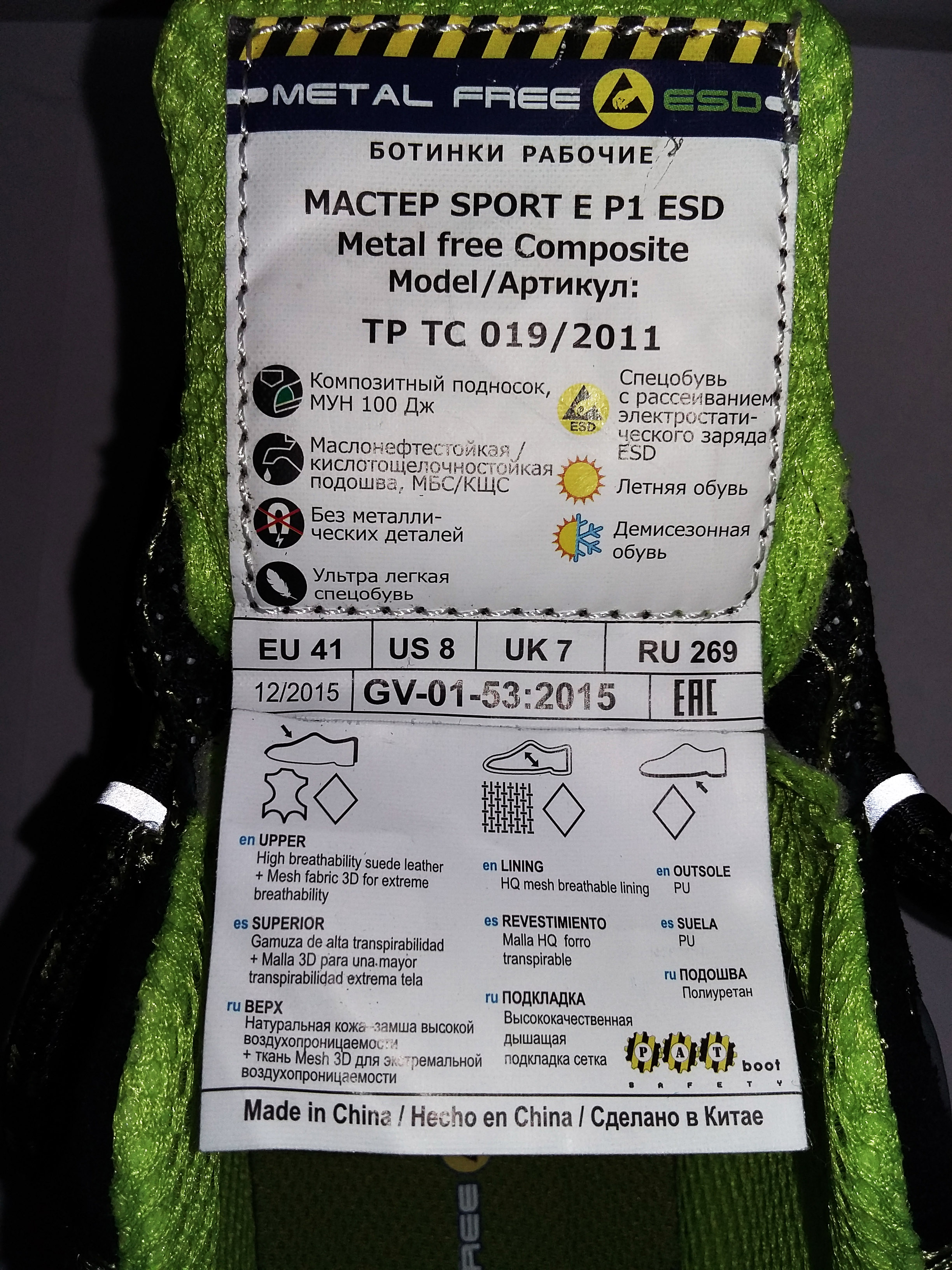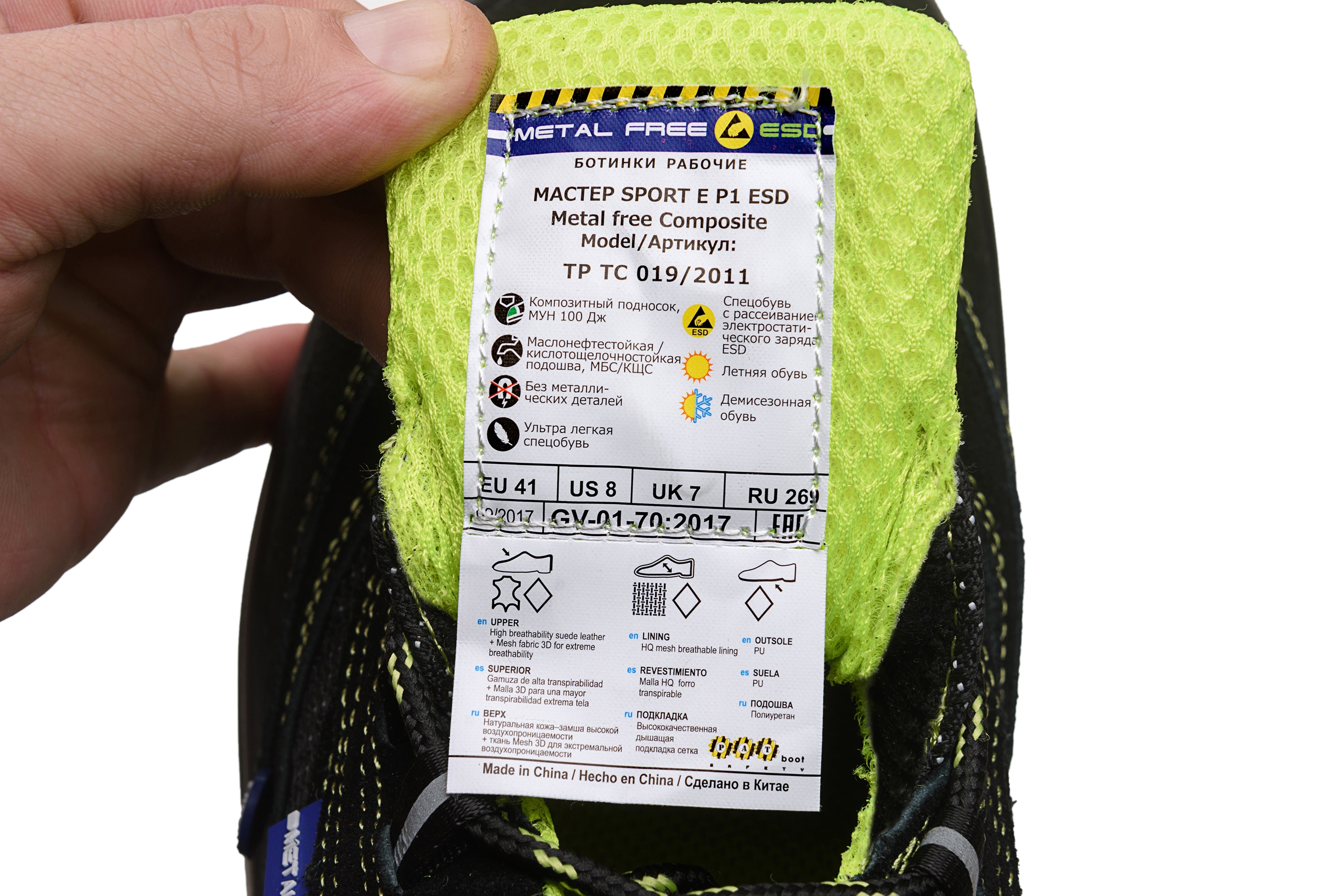 Подошва: полиуретан МБС, КЩС, антистатичная, износоустойчивая, с эффектом рассеивания электростатического заряда ESD, крупные и глубокие грунтозацепы