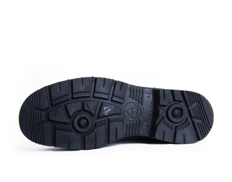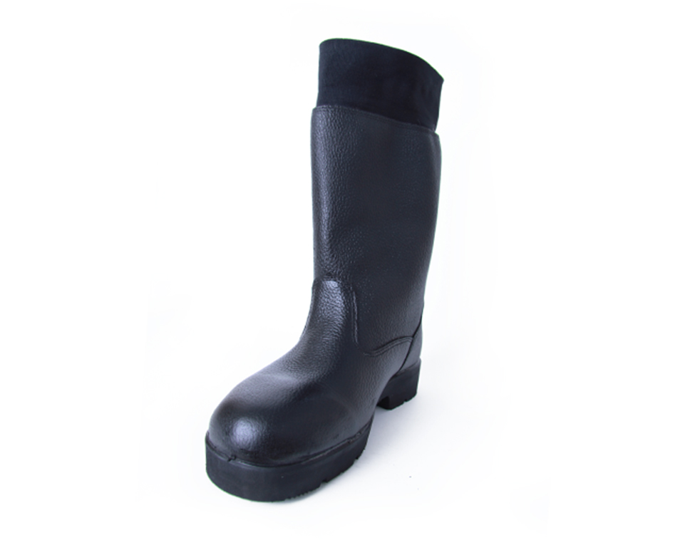 Сапоги «Литейщик», где для защиты носочной части стопы применяется металлический подносок (Мун 200). Обувь изготавливается компрессионно-литьевым методом крепления подошвы из резины на основе нитрильного каучука с последующей вулканизацией к заготовке верха обуви. Материал верха – термоустойчивая, водоотталкивающая натуральная кожа повышенной толщины (1,8- 2,0 мм). Подошва маслобензостойкая (устойчивая к воздействию агрессивной среды – масел, нефтепродуктов) изготовлена из износостойкой, термостойкой (+300°С при кратковременном (60 с) контакте с нагретыми поверхностями) резины на основе нитрильного каучука. Применяемый для литья подошвы нитрил обладает высокой эластичностью и гибкостью. Рисунок протектора ходовой поверхности подошвы обеспечивает хорошую сцепляемость с замасленными поверхностями (высота профиля подошвы, т.е. глубина протектора, составляет 4,0 мм). Применяемые натуральные материалы, широкая и удобная колодка обеспечивают высокие эксплуатационные свойства обуви, защиту от внешних воздействий и высоких температур. Обувь серии «Нитрил» рекомендуется использовать на производствах, связанных с воздействием на стопу человека низких и высоких температур, горючих и смазочных материалов.