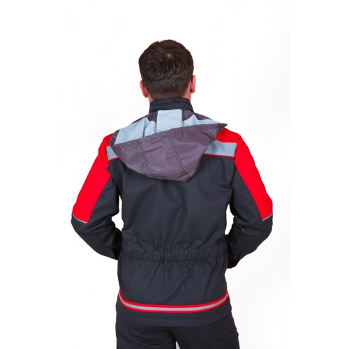 Особенности куртки: СВП на груди и спине, ранцевая лента с СВП элементами по низу куртки, потайной застежки и карманах, воротник стойка, капюшон