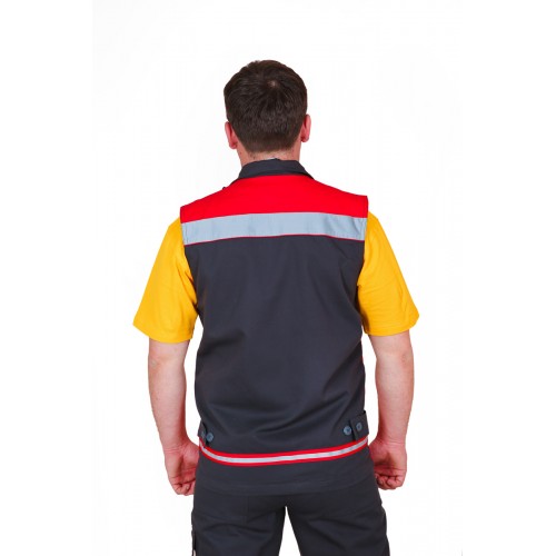 Особенности жилета: СВП на груди и спине, ранцевая лента с СВП элементами по низу жилета, карманах, воротник стойка.
